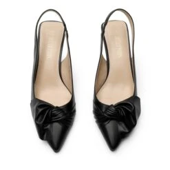 Wear these slingback kitten heels with any outfit for a simple chic style. The large bowknot along with the pointed toe shape gives these heels added elegance and glamour. These slingback heels can be easily dressed up for a special occasion or can be worn with a pair of jeans for a casual look.