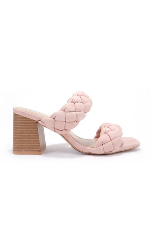 Braided Woven Sandals With Chunky Wooden Heels-Blush Pink