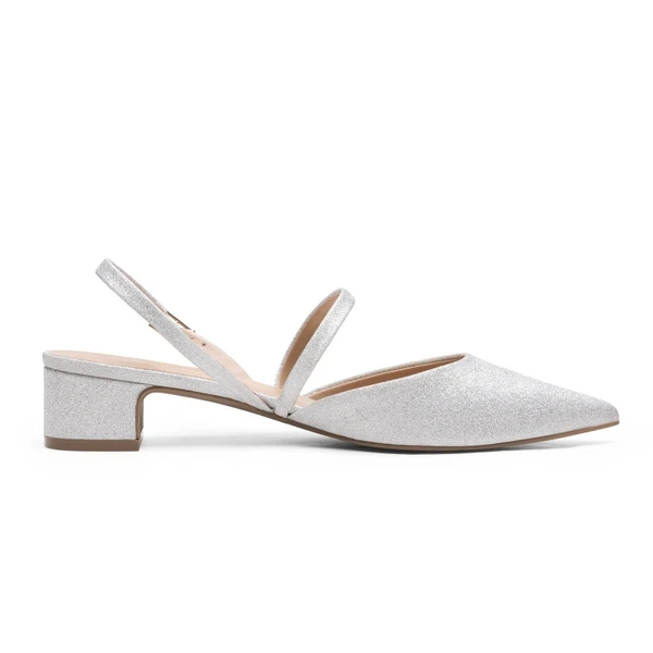 - Pointed toe and low chunky heel design