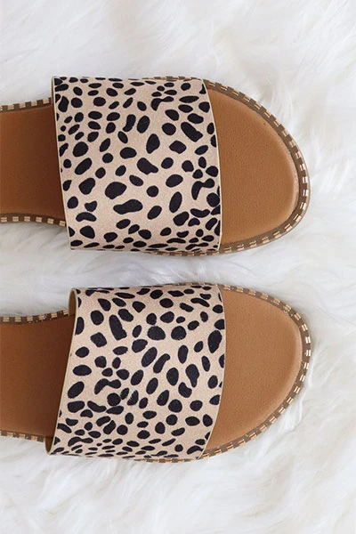 FLASH DEAL: Single Band Gold Trim Sandals Slides-Leopard Print (Size 6.5)