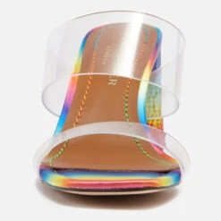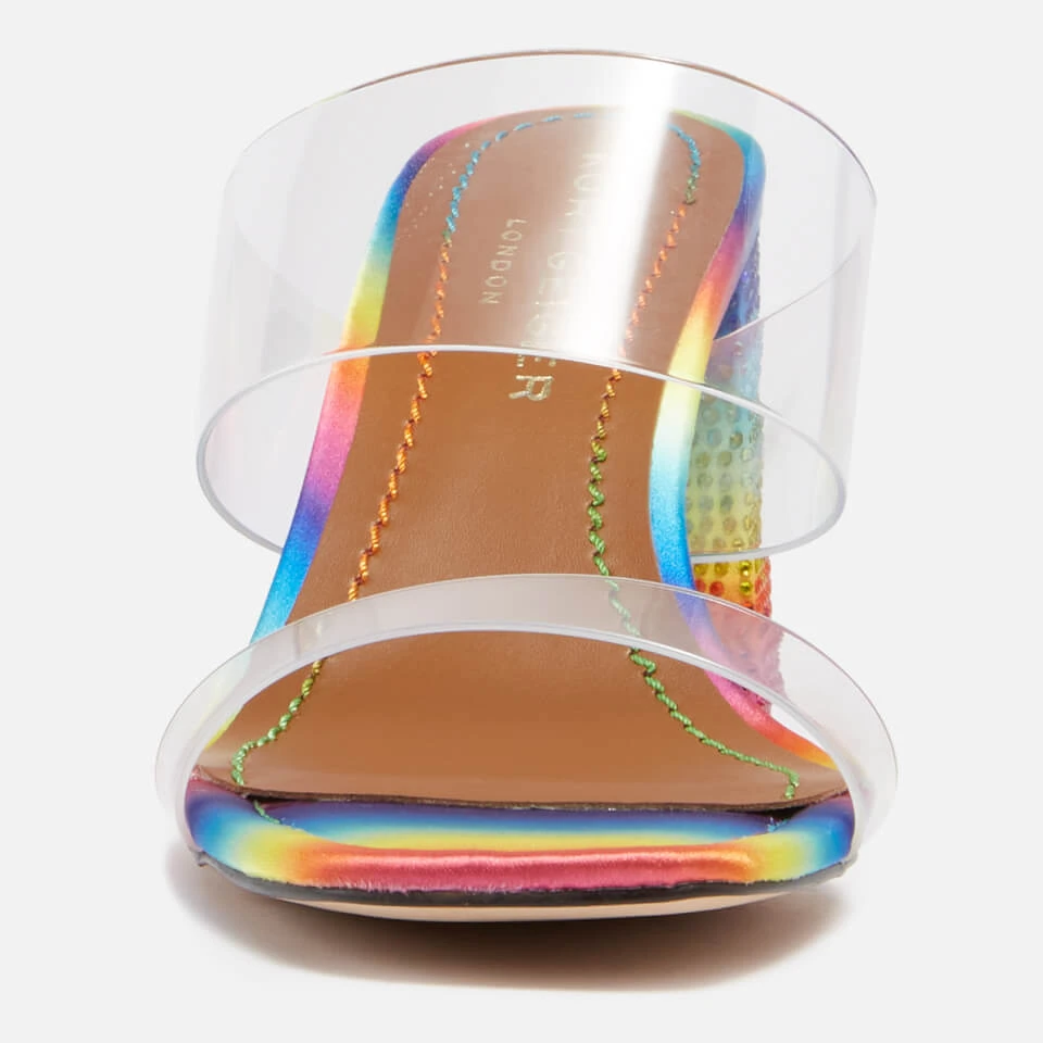 Kurt Geiger celebrates colour and pride with this iteration of their Kensington heeled sandals. While Perspex uppers give the illusion of nothingness, the base is loudly and proudly adorned with multicoloured crystals. The signature Eagle head is mounted to the block heel for house polish.