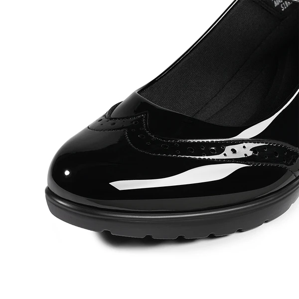 The sleek vamp and brogue details are reminiscent of formal dress shoes, while the retro-inspired Mary Jane silhouette lends an air of understated elegance. These chunky heel Mary Jane pumps feature a cushioned insole with arch support and a walkable chunky heel, ensuring your feet stay comfortable and supported all day long.