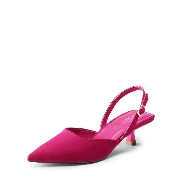 - Timeless Pointed Toe: Elevate your style with our pointy-toe slingback kitten heels that are designed to enhance your look with a flattering vamp and elegant suede material.