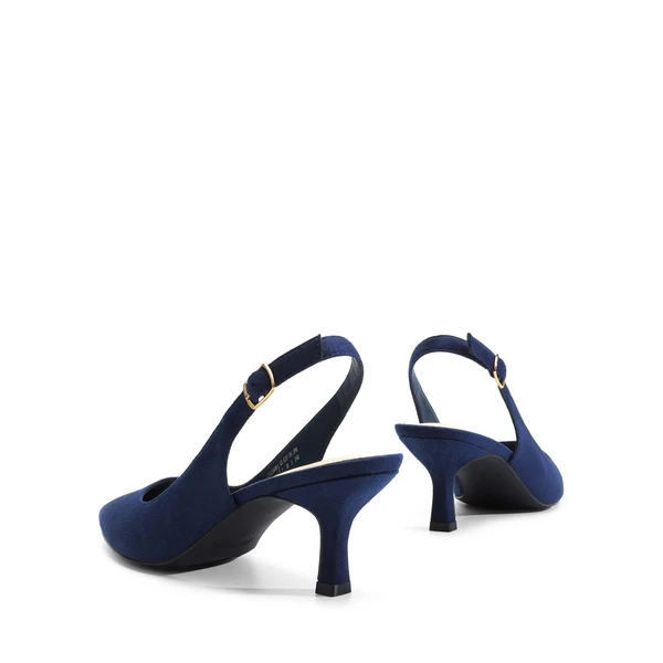 Slingback Pointed Toe Kitten Heel Pumps NAVY SUEDE