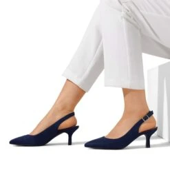 Be the first to review “Slingback Pointed Toe Kitten Heel Pumps NAVY SUEDE” Cancel reply