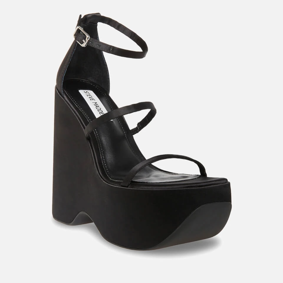 - Adjustable ankle strap, square open toe, block heel, logo patch