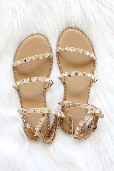 It’s all in the details! These fun strappy sandals have everything you’ll ever need in a sandal. Three strap design. Ankle strap with buckle closure for a flexible fit. Taupe straps with gorgeous studded detail. Gold trim along the border of the sole. Gold studs and hardware. These are going fast! Grab a pair before they’re gone. You won’t regret it!